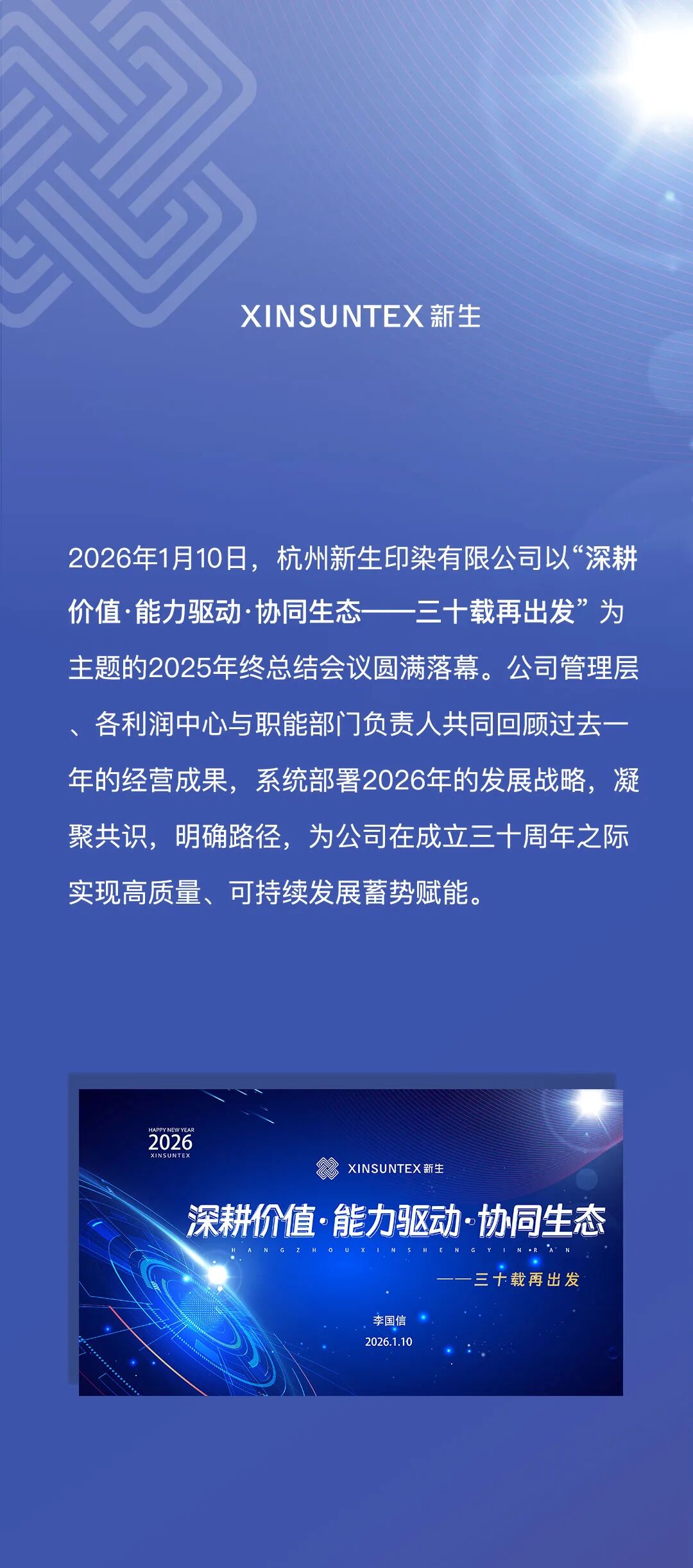 三十载再出发|新生印染2025年年终总结会议圆满落幕